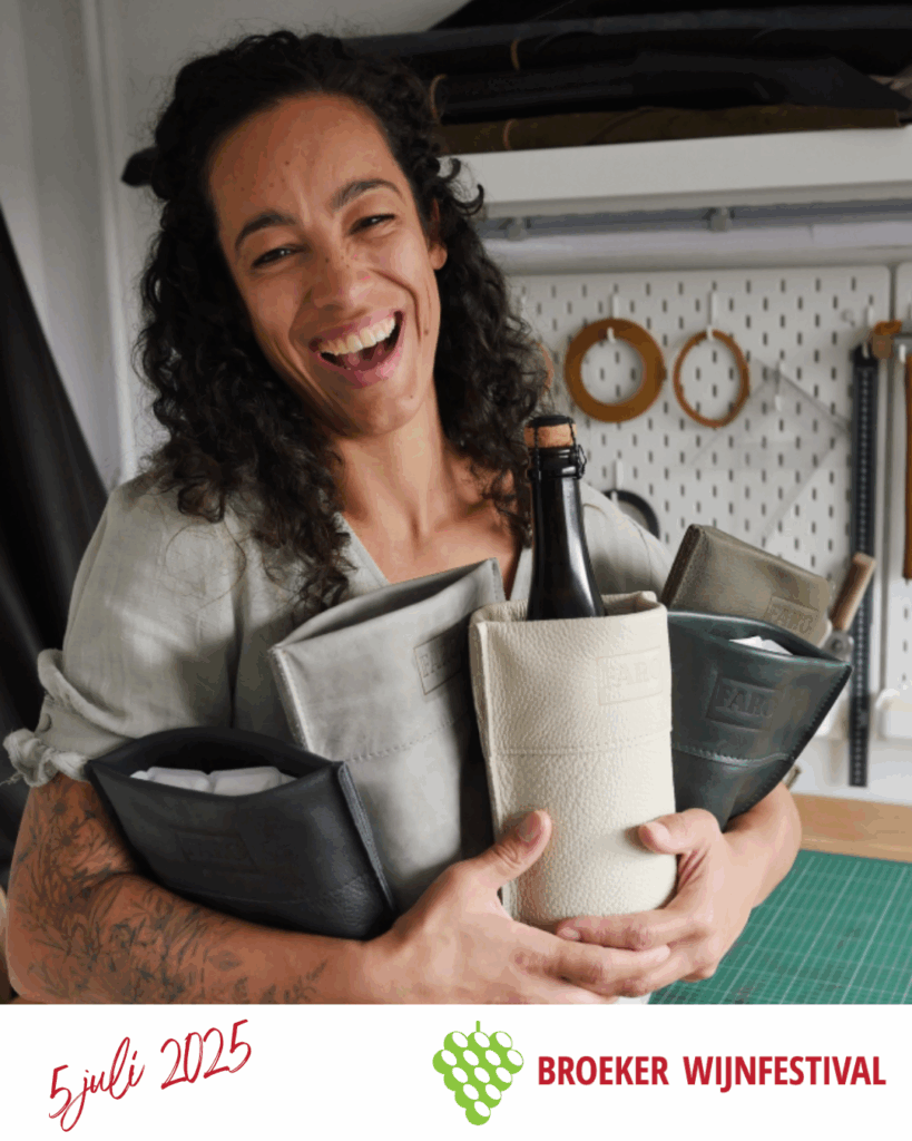 Tijdens het wijnfestival neem ik mijn Ivy Wijnkoelers mee. Deze stoere koeler wordt geleverd met een Vacu Vin Cooler die ervoor zorgt dat jouw wijn binnen 15 minuten koelt is en lekker koud blijft. Ze zijn gemaakt van restleer en geven elke fles wijn nét dat beetje extra. Niet alleen praktisch, maar ook een duurzame en stijlvolle eyecatcher voor op tafel of in de picknickmand.”